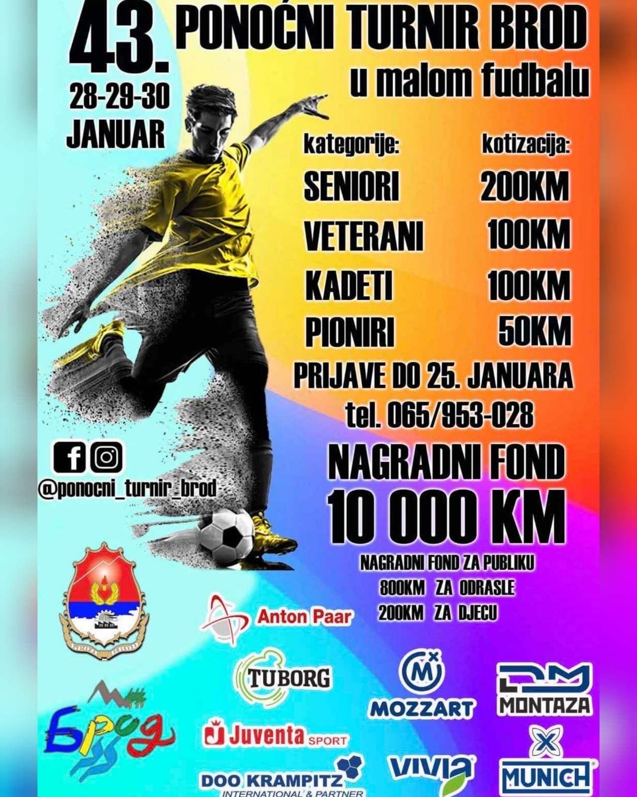Традиционални 43. турнир у малом фудбалу игра се од петка 28. до недеље 30. јануара 2022. године у Спортском центру у Броду. Добродошли!